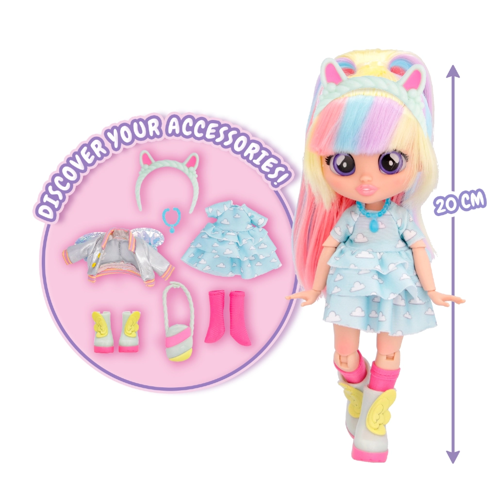 Jenna lenyűgöző szivárvány hajával, nagy, kristályfényű szemével és pasztellszínű divatos szettjével hódít. Tökéletes szerepjátékhoz és gyűjtéshez.