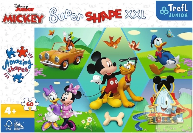 A közkedvelt MICKEY MOUSE motívummal készült, 60 extra nagy darabból álló Super Shape puzzle ideális szórakozás a gyerekeknek. Néhány darab atipikus körvonalú, ami feldobja az összerakást, és segít a formák felismerésében.
