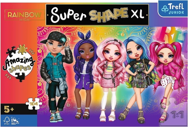 Ez az XL Super Shape puzzle a kedvelt RAINBOW HIGH szereplőkkel minden kreatív tevékenységet kedvelő kis rajongónak örömet szerez. A nagyobb daraboknak és a speciális formáknak köszönhetően a kirakás változatosabb, és a gyerekek hosszabb ideig leköti a figyelmüket. A minőségi nyomtatás és az élénk színek gyönyörű végeredményt biztosítanak.