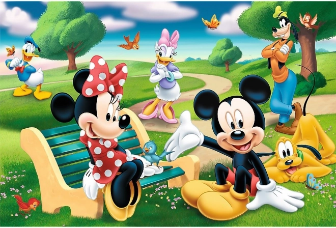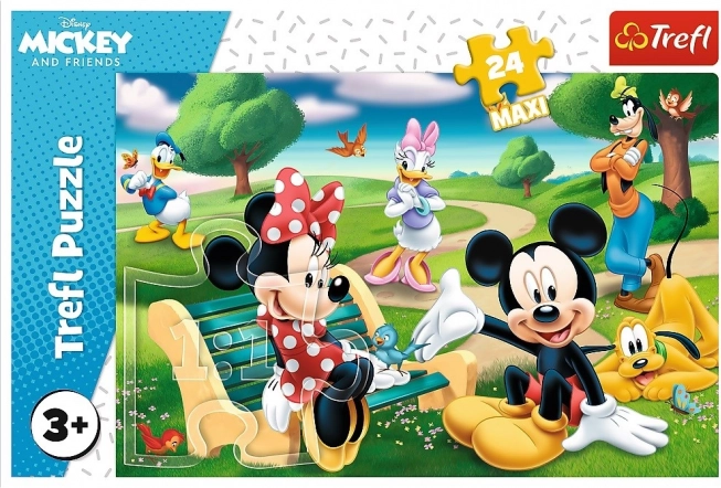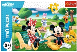 Gyermek puzzle MICKEY MOUSE és barátai motívummal, 24 MAXI darabbal – ideális a kis építőknek. Összeállítva 60 × 40 cm méretű képet alkot. Kiváló minőségű, környezetbarát anyagokból készült, kalanderezett, fényesebb papírral az egyszerűbb kirakáshoz. Lengyelországban készült.