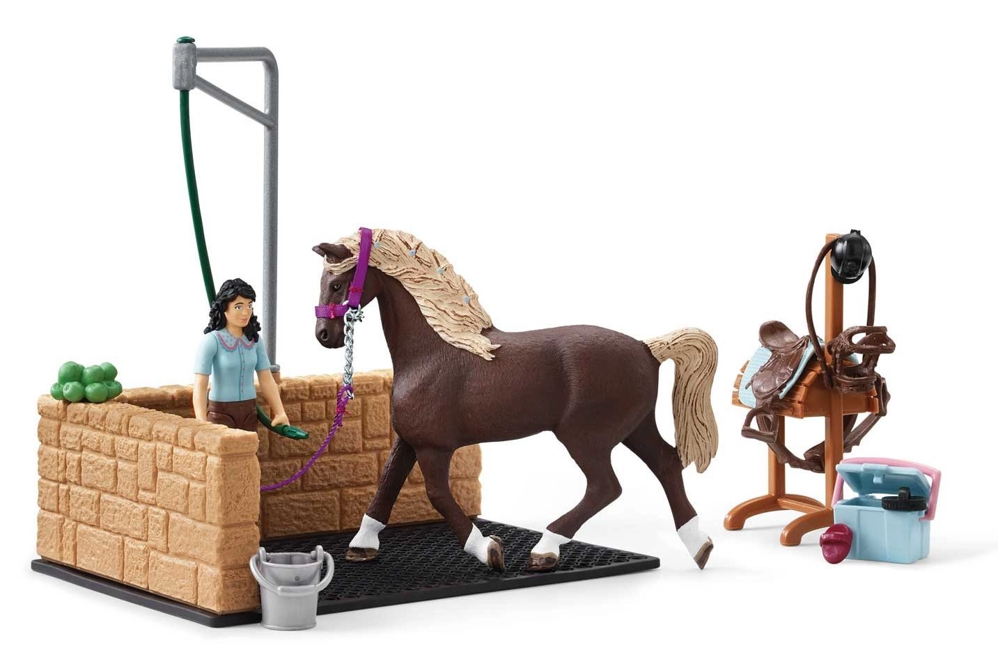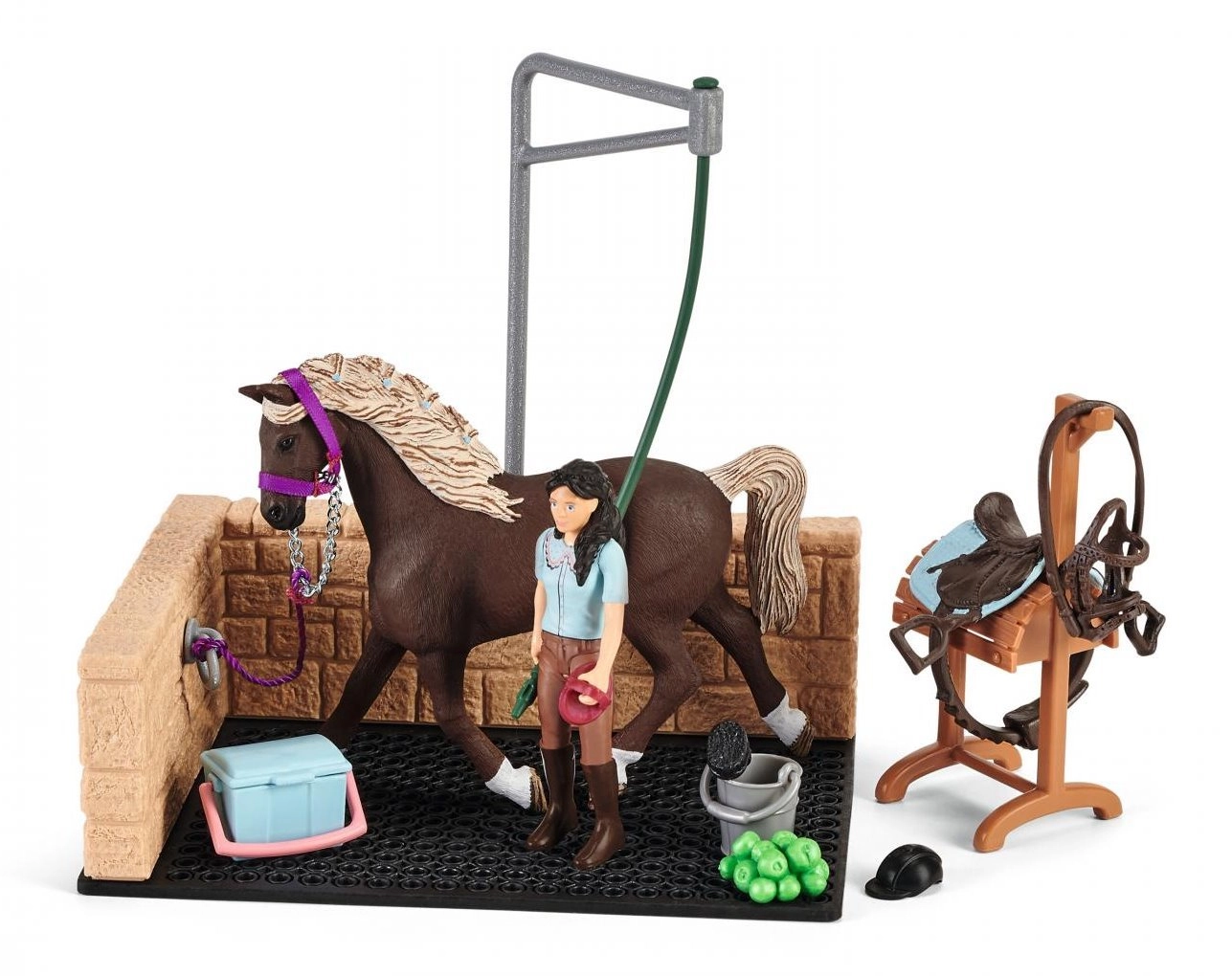 Fedezze fel a modern designú Schleich lóklub mosódobozt Emilyval és Lunával! Ez a fantasztikus játékszett kínálja a teljeskörű élményt lóápolás során: