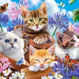 Színes gyerekpuzzle aranyos kiscicákkal és virágokkal, amely örömet szerez minden kis kirakórajongónak. 70 darabból áll, és kirakva 40 × 29 cm-es képet alkot. A minőségi kivitelezésnek és az élénk színeknek köszönhetően nemcsak szórakoztató, hanem fejlesztő is – támogatja a finommotorikát, a koncentrációt és a képzeletet.