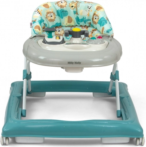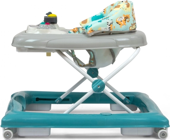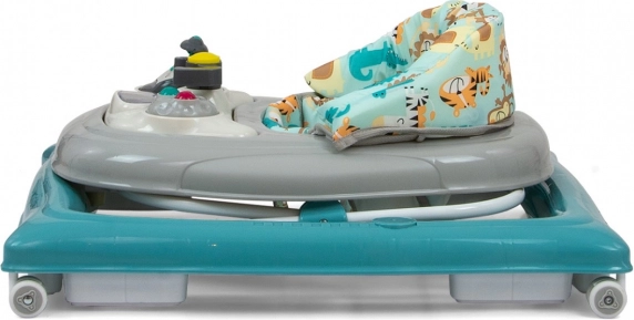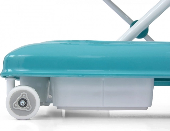 Négy, kiváló minőségű, forgó kerék gondoskodik a szabad mozgásról, amelyek nem karcolják meg a padlót, továbbá nyolc gumis ütköző védi gyermekét a lépcsőről vagy más akadályról való lecsúszástól.