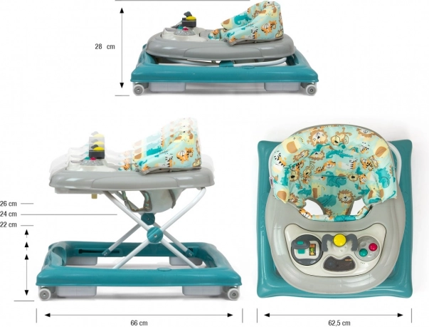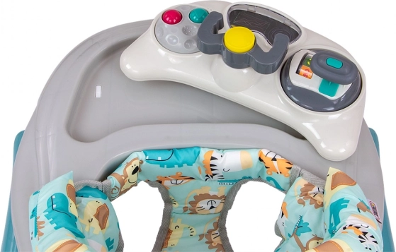 A termék oktató panellel rendelkezik, amely számos meglepetést tartogat a kis felfedezőknek: fények, sípok, dallamok, csörgők, gombok és egyéb mozgó elemek. A panel a kompból kivehető, így önálló játékként is használható, például kellemes útitársként, a felső rész pedig játéktálcaként szolgálhat.