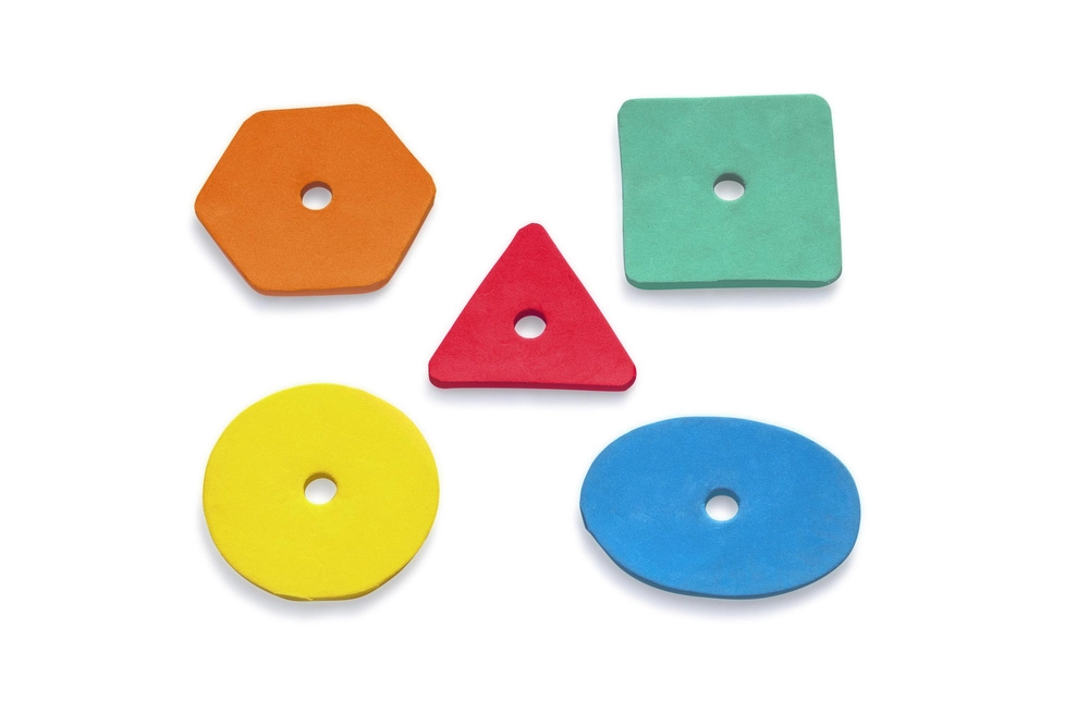 A speciális nyílásokkal ellátott ív és az 5 színes habforma segít a gyerekeknek felismerni a színeket és formákat, miközben fejleszti a finommotorikát és a koordinációt.