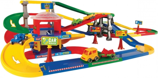 A Play Tracks Garage sorozat parkolókomplexuma könnyű szerkezetű, így a pályák különböző formákban állíthatók össze, változatosabbá téve a játékot. A szett két szintes parkolót és egy tizenegy méter hosszú pályát tartalmaz.