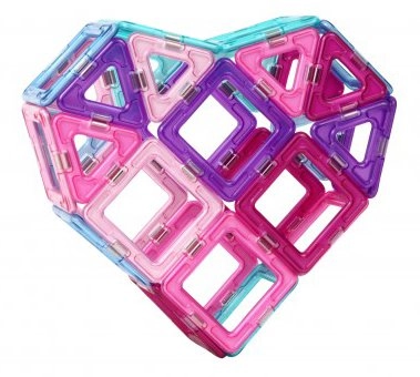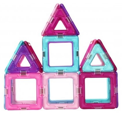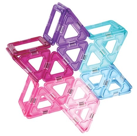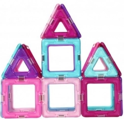A kedvelt építőkészlet pasztell kiadása 18 négyzetet és 12 háromszöget tartalmaz félig áttetsző színekben (rózsaszín, lila, türkiz, kék). Az elemek megbízható, élmenti mágnesekkel kapcsolódnak, így a gyerekek könnyen készíthetnek csillagokat, házikókat, szíveket és tornyokat. Ideális az első konstrukciós próbálkozásokhoz és a térbeli képzelet fejlesztéséhez.