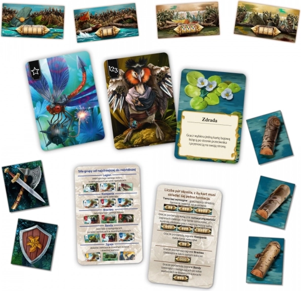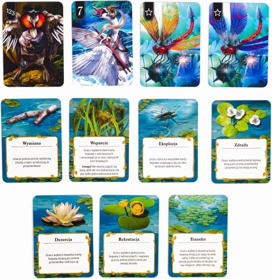A híres "Schotten Totten 2" játék cseh kiadása gyönyörű illusztrációkat kínál Piotr Sokołowski tollából, és mély taktikai élményt biztosít. Alkoss formációkat a lengyel folyók élővilágát reprezentáló állatok, mint például gémek, harcsák vagy szalamandra, és gyűrd le az ellenfél támadó stratégiáját.