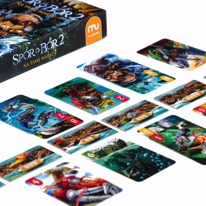Spór o Bór 2: Na tamje marsz egy izgalmas kártyajáték két játékos számára, amelyben megélheted a stratégiai gondolkodást és az egészséges versengést. Az egyik játékos megpróbálja megrongálni a gátakat, míg a másiknak meg kell védenie azokat. A játék három változatot kínál: a standard, egy visszavágó mód a szerepek cseréjével, és egy taktikai kártyákkal rendelkező változat tapasztalt játékosoknak.
