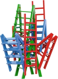 - 24 létra (8 piros, 8 kék, 8 zöld), játékszabály, színes doboz