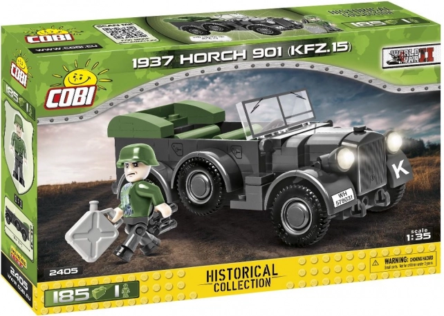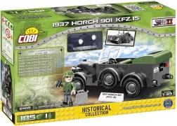 Hű másolata a Horch 901 járműnek, amelyet a német fegyveres erők 1937–1945 között használtak, élethű formákat és funkcionális részleteket hoz a gyűjteményedbe. A járművet törzskocsiként, mentőként, összekötő járműként, könnyű tüzérségi vontatóként, valamint ellátmány- és katonaszállítóként vetették be. A COBI modell új típusú építőkockákat alkalmaz a még jobb karosszériaformázás és a könnyű átalakítás érdekében.