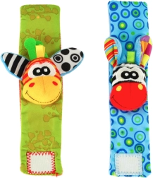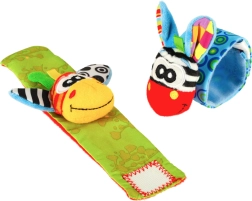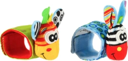 A bájos, állatfigurás pántok kontrasztos színeikkel és mintáikkal, puha anyagukkal és különféle tapintási textúráikkal keltik fel a baba érdeklődését. Minden kézmozdulatot finom csörgőhang jutalmaz, a fülecskékben pedig zizegő fólia rejtőzik a további érzékszervi élményekért.