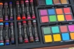 A szett tartalma: 24 olajpasztell, 16 színes ceruza, 24 akvarellfesték, 12 filctoll, 2 ecset, egy hegyező, 2 radír, rajztömb és kifestő – kiváló 3 éves kortól a felnőtteknek is. A minőségi anyagok és a gazdag színpaletta lehetővé teszik az eredeti, ötletes alkotásokat otthon, az iskolában és a szabadban.
