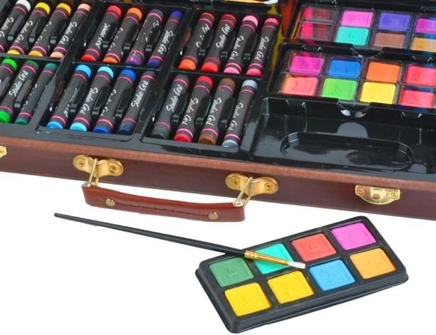 Ez az univerzális képzőművészeti készlet mindent tartalmaz, amire a kreativitás fejlesztéséhez szükség van – a skiceléstől az akvarellfestésig. Minden az ellenálló fa kofferben kapott helyet, biztonságos fém csatokkal és kényelmes bőr fogantyúval a könnyű hordozhatóságért. A külön rekeszeknek köszönhetően minden eszköz azonnal kézre áll és rendezetten tárolható.