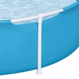 A medence stabil, fém vázzal rendelkezik, amely megfelelő szilárdságot és tartósságot ad az egész szerkezetnek. A falak háromrétegű anyagból készülnek – strapabíró poliészter és PVC kombinációjából –, amely véd a sérülésekkel szemben.