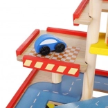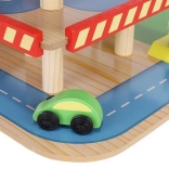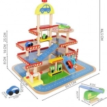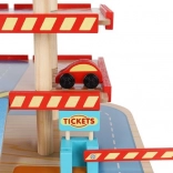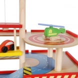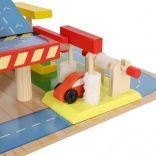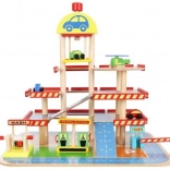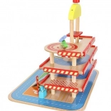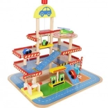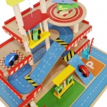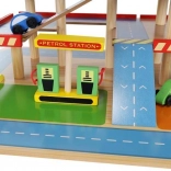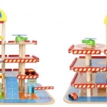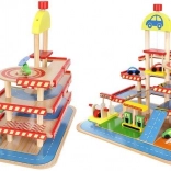 A színes, több szintes fa parkoló órákon át tartó szórakozást nyújt, miközben fejleszti a finommotorikát és a képzelőerőt. Tartozékai: autómosó, benzinkút, pénztár, lift, heliport és járművek. A stabil, biztonságos fából készült szerkezet és a valósághű kiegészítők támogatják a kreatív játékot és a közlekedési helyzetek megismerését.
