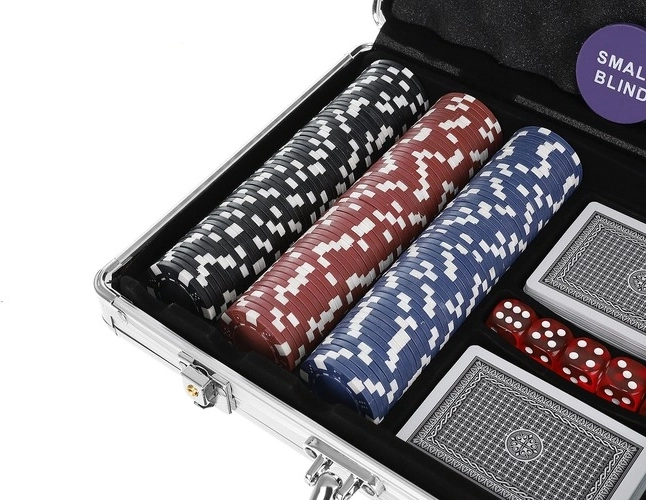 Stílusos koff er, amely megvédi a teljes készletet. A belső hab és a formázott rekeszek utazás közben is a helyükön tartják a kártyákat, zsetonokat és kockákat.