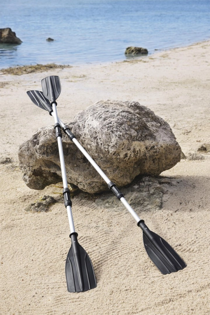 Az evezők 16 cm széles és 33 cm hosszú lapátokkal rendelkeznek, ami biztosítja az optimális teljesítményt evezés közben. Szabadidős használatra készültek és ideálisak a vízen való kikapcsolódásra. Könnyű összeszerelésük és erős kötéseik garantálják a stabilitást használat közben.