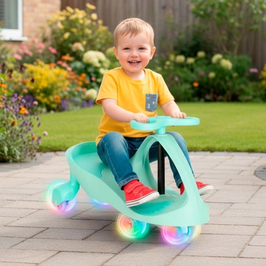 Elég a kormányt felváltva forgatni, és a jármű finoman elindul. A gyerekek természetes módon fejlesztik a motorikát és az egyensúlyt.