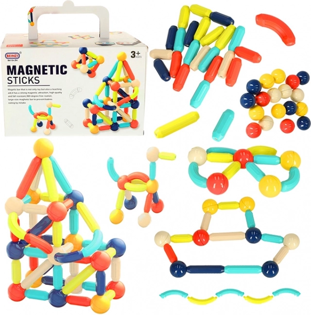 Szórakoztató és oktató mágneses építőkészlet gyerekeknek, 64 darabbal, végtelen kreatív lehetőségeket kínál az építéshez. Minden darabot erős mágnesekkel láttak el, ami egyszerűvé teszi a kezelést és a különböző konstrukciók stabilitását.