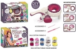 Ez az ügyes kötőgép ötvözi a szórakozást a tanulással. Lehetővé teszi a kreativitás kifejezését a divat által, és teljesen biztonságos gyermekek számára. A készletben különböző színű fonalak, horog és műanyag tű találhatók, így ideális ajándék kis tervezők számára.