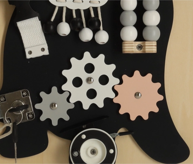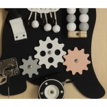 Az interaktív elemek, mint például a sebességváltók, zárak és cipőfűzők segítségével a gyermekek finom motorikus készségeik fejlesztésében és kézmozgásuk precizitásának javításában részesülhetnek.