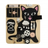A fekete kiscica és világos fából készült részletek kombinációja felkelti a figyelmet és hosszú órákon át leköti a gyermeket.