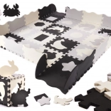 Duże, piankowe puzzle to sposób na kreatywną i wciągającą zabawę. Zabawa puzzlami pobudza wyobraźnię dziecka, zachęca do logicznego myślenia i doskonale rozwija zdolności manualne. Dodatkowo, kontrastowa kolorystyka i chropowata struktura stymulują zmysły wzrokowe i dotykowe malucha.