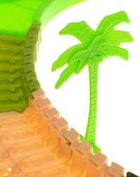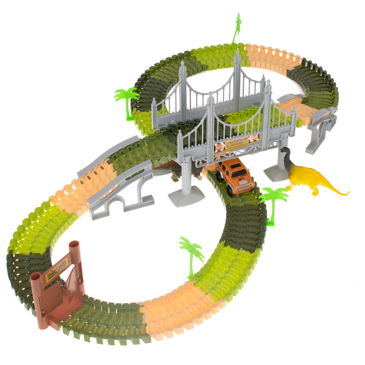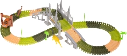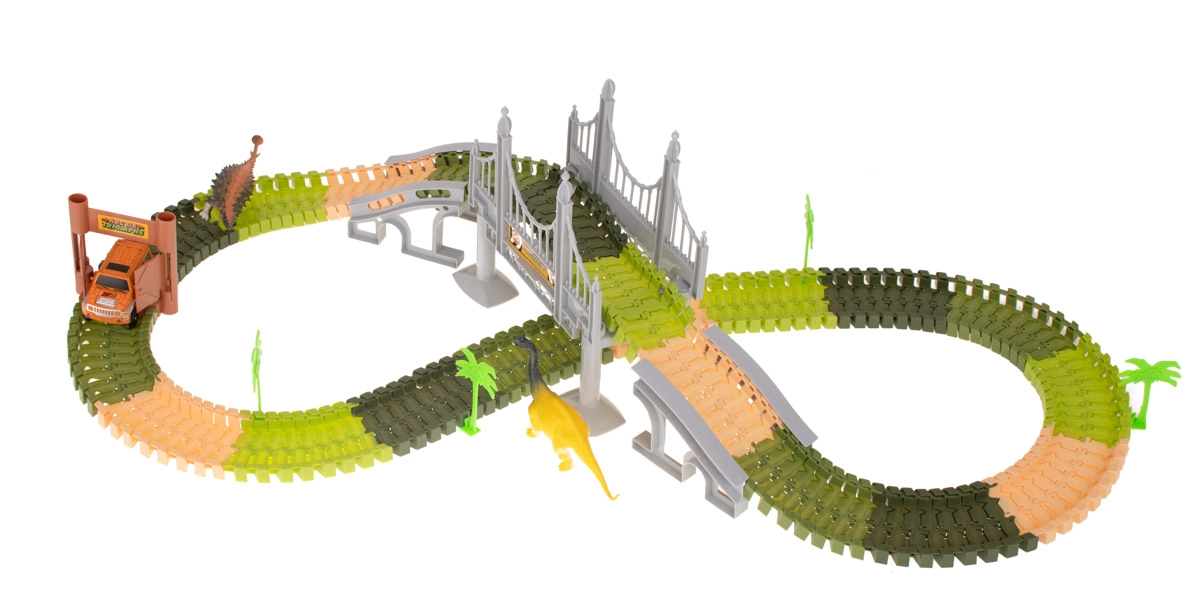 A készlet tartalma: 160 pályaelem, autó, 2 dinoszaurusz, 4 pálmafa, híd és kapu. Az autó 1 db AA 1,5V elemmel működik, mely nem tartozék. Minden pályaelem könnyen összeszerelhető, és nagyon rugalmas a különböző formákhoz és variációkhoz.