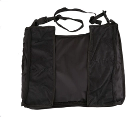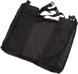 A tálca strapabíró, vízálló poliészterből készül, állítható pántokkal könnyen rögzíthető és ugyanilyen gyorsan elpakolható. Az oldalsó négy hálós zseb rendezetten tartja a játékokat, uzsonnát, telefont vagy zsebkendőt.