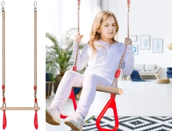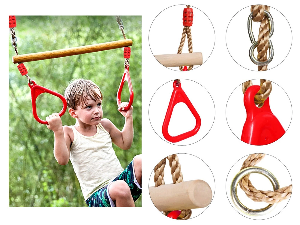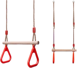 Masszív kialakítás természetes fa rúddal, erős, állítható kötelekkel és ergonomikus fogantyúkkal a biztonságos és kényelmes használatért. A színes elemek mozgásra, mászásra és hintázásra ösztönzik a gyerekeket.