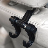 Univerzális autós akasztó kiváló segéd a rend fenntartásához a járműben. Lehetővé teszi a vásárlások és más tárgyak biztonságos felakasztását két kampóval, amelyek szöge szükség szerint beállítható.