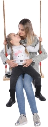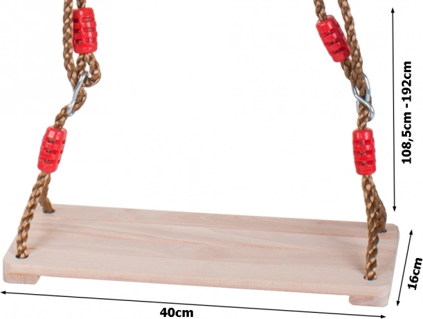 Univerzális fa hinta gyerekeknek és felnőtteknek, amely biztonságos szórakozást nyújt a kertben, teraszon és játszótéren. A masszív, simára csiszolt fa ülés és az állítható kötelek kényelmet és egyszerű felszerelést biztosítanak. A stabil szerkezetnek és 100 kg teherbírásnak köszönhetően az egész család számára ideális.