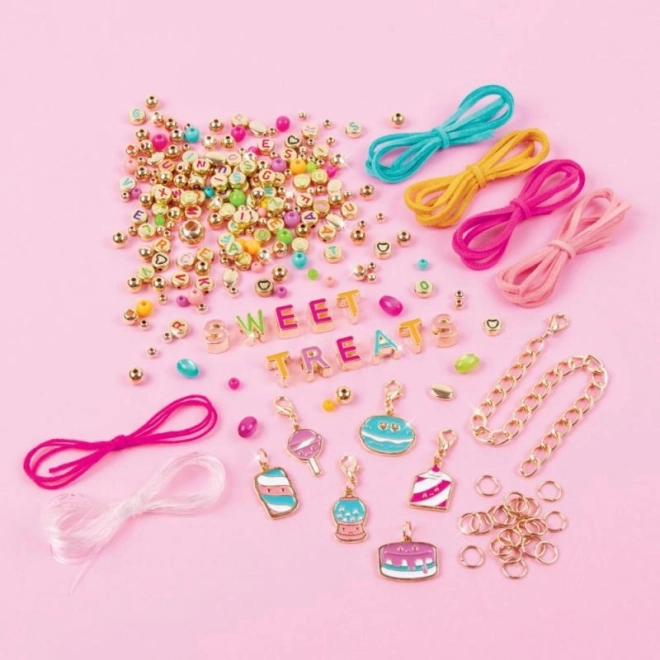 Fedezd fel a színek és kreativitás varázsát a Sweet Treats karkötő készítő készlettel. Ez a készlet úgy lett kialakítva, hogy támogassa a gyerekek kreativitását és fantáziáját saját ékszereik készítése során. Tartalmaz minden elemet hét egyedi karkötő elkészítéséhez, amelyek nagyszerű divat kiegészítővé válnak.