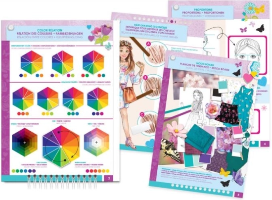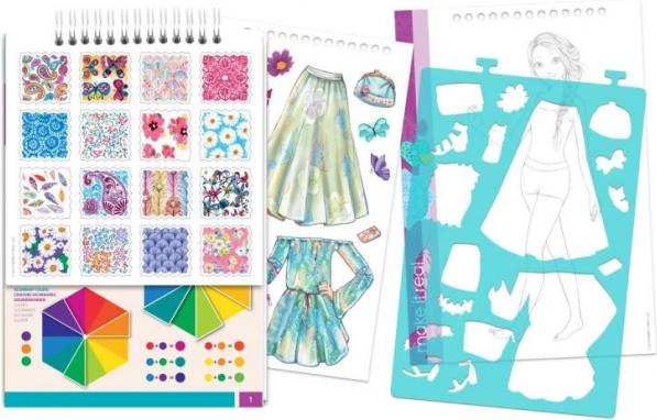 Tervezői portfólió virágmintával offerellen a gyerekeknek lehetőséget, hogy fejlesszék kreativitásukat több mint 120 sablonnal és matricával, ideális fiatal tervezők számára.