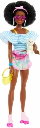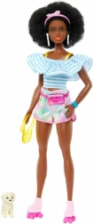 Ez a divatbaba friss, nyári stílust és rengeteg lehetőséget kínál a képzelet fejlesztésére. A fodros, csíkos blúz, a pasztell sportos sort és a rózsaszín görkorcsolyák kihangsúlyozzák feltűnő megjelenését. Nem hiányzik a göndör afro frizura sem, amely karaktert és egyediséget ad.