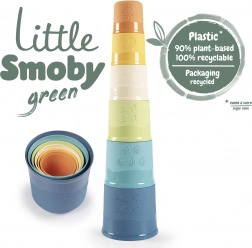 Ez a környezetbarát rakosgató torony a Little Smoby sorozatból okos szórakozást kínál a totyogóknak. A hat, fokozatosan csökkenő méretű pohár magasra építhető vagy egymásba illeszthető, ami támogatja a kéz–szem koordinációt, a logikát és a méretek érzékelését. Minden elem más színű és dombornyomott mintákkal, számokkal készült, melyek felfedezésre és tanulásra hívnak.