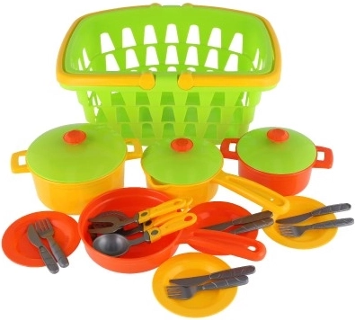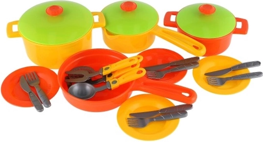 Ez a konyhai készlet tökéletes kiegészítő minden olyan gyermek számára, aki szeret főzni. A készlet 28 darabot tartalmaz, például vízforralót, serpenyőt, két lábast fedőkkel, tányérokat, bögréket és kanálkákat. A tartós műanyag hosszú élettartamot biztosít, a színes kivitel pedig felkelti a gyerekek figyelmét, támogatva a kreatív játékot és a motorikus készségek fejlődését.