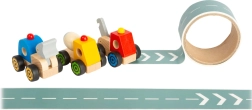A fa jármű és az útszalag szett olyan játékélményt nyújt, amely a képzelettel együtt növekszik. A gyerekek könnyedén felragaszthatják a „utat”, megtervezhetik a kereszteződéseket és a versenypályákat, és már indulhat is a kirándulás. A minőségi fából készült kisautó tartós, kézre álló, és ideális a kicsi sofőröknek 3 éves kortól.