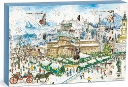Ez az egyedi adventi naptár az ünnepi dekorációt pihentető szórakozással ötvözi kicsiknek és nagyoknak. A külső borító kihúzása után egy belső tábla jelenik meg 12 ablakkal, amelyek mögött illusztrált kirakók rejtőznek. Minden motívum a karácsony szellemét a világ különböző tájain idézi meg Michael Storrings kézjegyével.