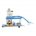 Ajándékozzon a gyerekeknek akciódús történetek világát ezzel a small foot rendőrállomással, 100% FSC® fából. A két emeletes állomás toronnyal és heliporttal, kihúzható rácsos cellával és felhajtó rámpával bőséges tartozékkal érkezik: rendőrautó, helikopter és két figura. A fa és a minőségi műanyag masszív kombinációja tartósságot és hosszú élettartamot garantál, ráadásul a szett kompatibilis más gyártók vonatpályáival is.