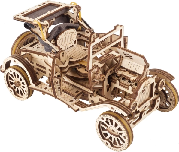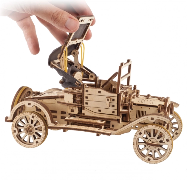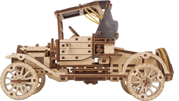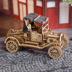 Lépjen be a történelmi járművek világába ezzel a fából készült modellel, amelyet az ikonikus Ford Model T inspirált. A modell nyitható ajtókat, összecsukható vászontetőt és az önálló vezetés, beleértve a hátramenetet is, lehetőséget kínál.