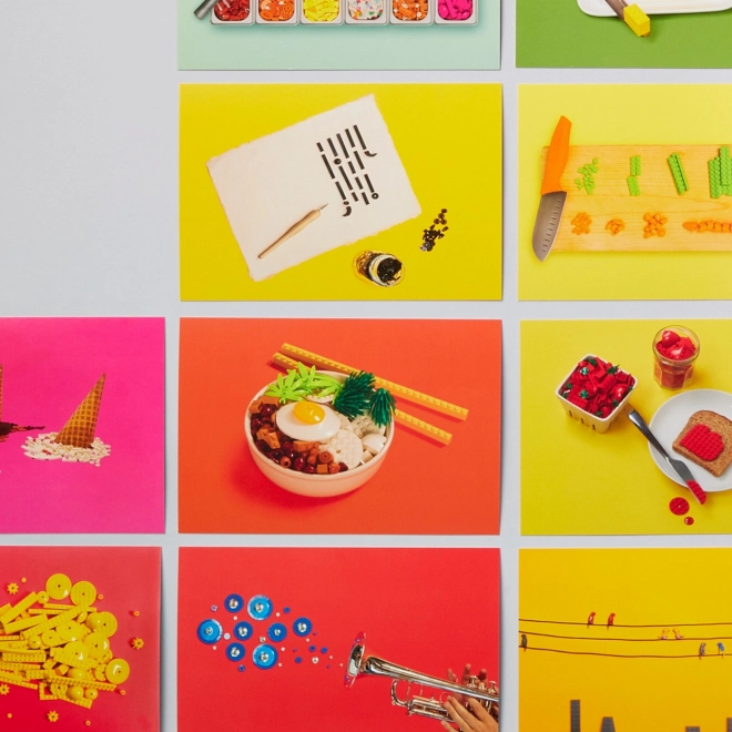 Lepje meg önmagát és szeretteit eredeti LEGO témájú képeslapok gyűjteményével. Az elegáns, masszív dobozban 100 képeslapot talál 50 különböző motívummal, játékos színekben komponált csendéletekkel. A minőségi kivitel, a hivatalos LEGO licenc és a praktikus 10,5 × 15,5 cm-es méret ideális választássá teszi őket jókívánságokhoz, meghívókhoz és dekorációhoz.