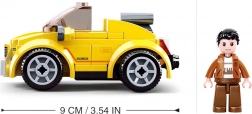 A Sluban Town sorozat sárga kabriója gyors vezetést, éles fékezést és sok mókát kínál építés közben és játék közben egyaránt. A szett tartalmaz egy bőrkabátos sofőrt és egy működő kiegészítőt, a jelzőlámpát, így a gyerekek könnyedén megalkothatják saját városi jeleneteiket. Minden eleme tartós és biztonságos ABS műanyagból készült, amely bírja a mindennapos játékot.