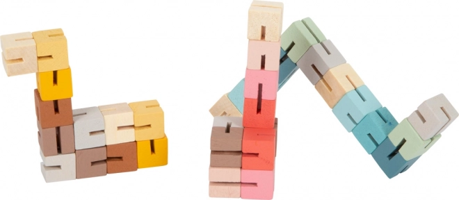 A Small Foot varázskígyója klasszikus és időtálló játék, amely örömet okoz kicsiknek és nagyoknak. Az egyszerűségét, amit 12 robusztus fa kocka és egy gumiszalag alkot, lehetőséget nyújt különféle formák és figurák, például kígyók, kutyák, lámák és bábu létrehozására.