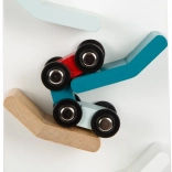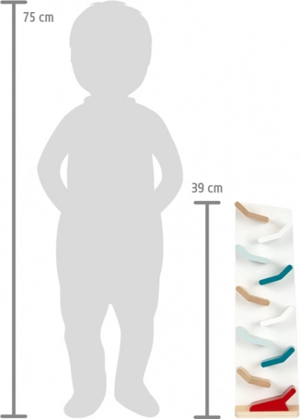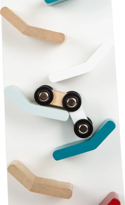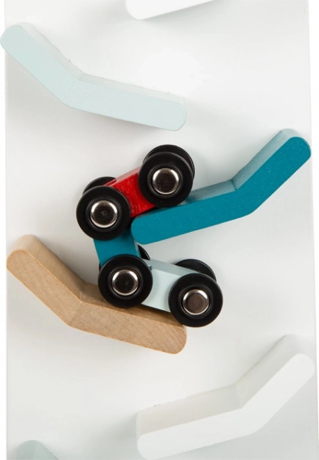 A fa kaszkád pálya ideális játék a gyermekek kreativitásának és finommotoros készségeinek fejlesztésére. Amint a színes kisautókat elengedi a tetejéről, azok kattogva gurulnak lefelé a pályán, sok szórakozást és izgalmat biztosítva. A modern színek fehérrel és természetes fával való kombinációja esztétikailag is kellemes dekorációvá teszi ezt a szettet minden gyerekszobába.