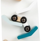 A modern színek fehérrel és természetes fával való kombinációja dekoratív elemmé is teszi ezt a játékot.