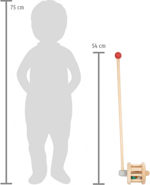 Ez a fából készült jármű ideális segítő a kisgyermekek mozgásképességeinek és egyensúlyának fejlesztésére. Egyedi dizájnja színes golyókkal rendelkezik, amelyek felkeltik a gyermek figyelmét és ösztönzik mozgásra. A fogható fa gömb a fogantyún javítja a kényelmet a járás során.