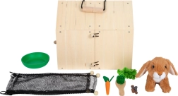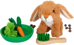 A készlethez tartozik egy plüss nyuszi és praktikus kiegészítők: seprűcske, tálka, fa répa, salátadarab és nemezből készült „bogyók” az élethű gondozási jelenetekhez. Ideális alternatíva azoknak a gyerekeknek, akik egyelőre nem tarthatnak valódi háziállatot, és segít fejleszteni a szociális és érzelmi készségeket.