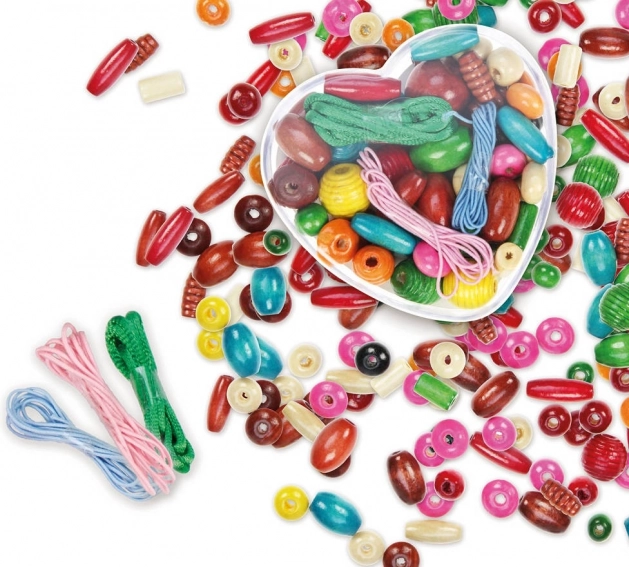 Engedje meg gyermekének, hogy fejleszthesse kreativitását és finommotorikáját a Lena fa gyöngyök segítségével. A készlet színes gyöngyöket tartalmaz különböző formákban és méretekben (9,5 mm), amelyek egy kis átlátszó szív alakú dobozban találhatók meg három fűzhető zsinórral.